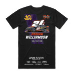 100% Cotton T Shirt featuring Dare to Live design on chest and 10th Anniversary X Factor Racing VIP Official Sponsors design on reverse