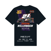 Kid's tee featuring Dare to Live design on chest and X Factor Racing 10th Anniversary Official Sponsors design on reverse
